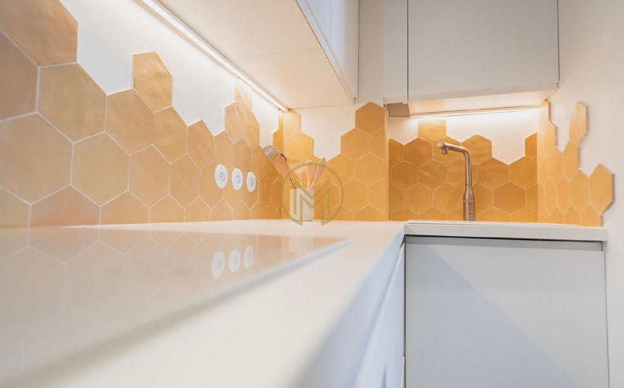 Cet appartement au 4ème étage d’une copropriété aux parties communes rénovées a séduit Maxime et Julie avec ses deux pièces et ses 42 m2 rénovés intégralement par un architecte avec une décoration très provençale soignée: murs peints à la chaux, terrazzo, béton ciré beige, menuiserie en noyer et mobilier aux courbes organiques.