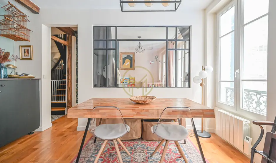 MANIGLIA IMMOBILIER vous propose aujourd'hui à la vente ce charmant appartement duplex de 3 pièces de 56,66 mètres carrés carrez, situé au pied de la butte de Montmartre, 18ème arrondissement de Paris.