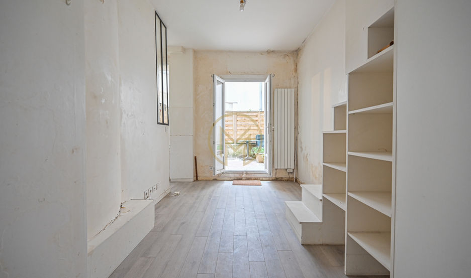 La pièce principale s'ouvre sur une rare terrasse privative de 9 m², idéale pour créer un espace extérieur à vivre, en plein Paris.